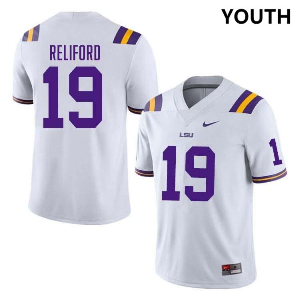 Shop the official #19 Gabriel Reliford Tigers White Youth Jersey Alumni College Football 224849-647 and show your support for the standout college football player. Made with high-quality materials, this jersey is a must-have for any LSU fan. Get yours today and represent the Tigers in style.